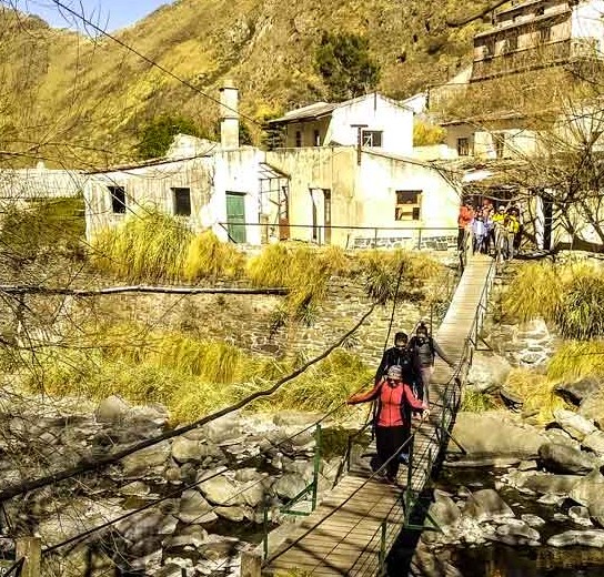Ingresamos por el encantador Puesto de Don Tono Albornoz, familia pobladora de la zona desde hace muchas generaciones, seguimos  por una pintoresca senda que nos lleva al valle donde se encuentra el histórico pueblo minero. Una vez en la zona del caserio del pueblo escondido exploramos la antigua iglesia y el socavón inferior, sumergiéndonos en la rica historia del lugar.